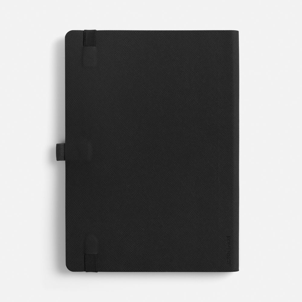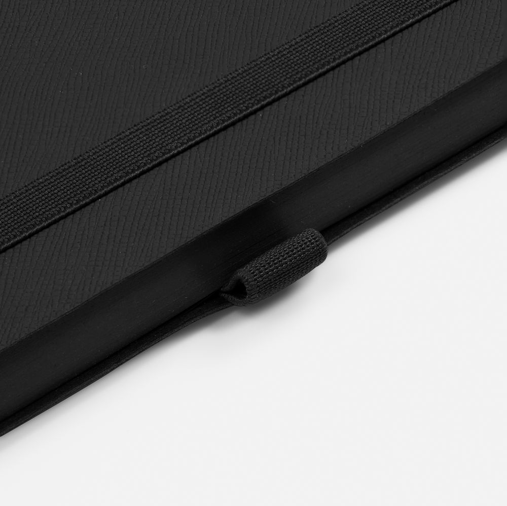 Ежедневник с гибкой обложкой, выполнен из материала Nice Touch, черный АА, дополнен цветными ляссе и петлей-резинкой для ручки.