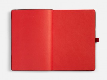 Ежедневник с гибкой обложкой, выполнен из материала Nice Touch Ultra, красный РР, дополнен цветными ляссе и петлей-резинкой для ручки.