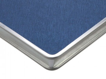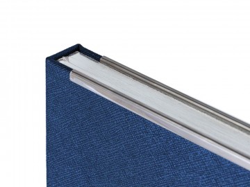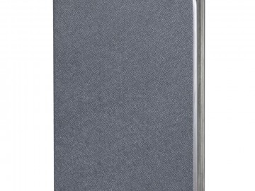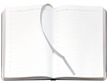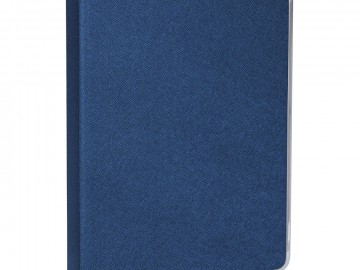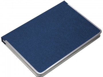 Ежедневник с твердой обложкой и серебристым обрезом, выполнен из материала Saffian, синий, дополнен серым ляссе и металлическими рамками.