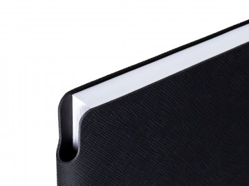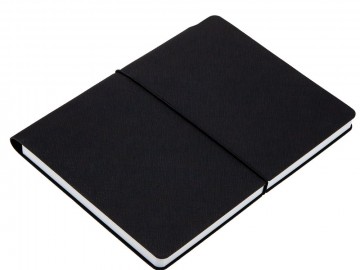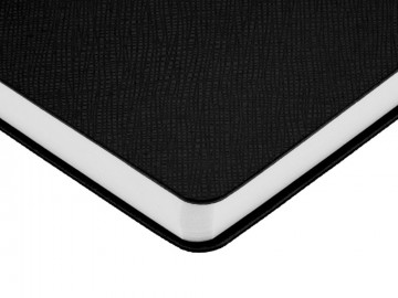 Ежедневник с гибкой обложкой выполнена из материала Nice Touch, черный и Latte, черный (внутренняя часть обложки), дополнен горизонтальной резинкой в цвет обложки. Внутри корешка — специальное место для крепления ручки размером до 15х1 см.