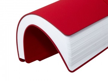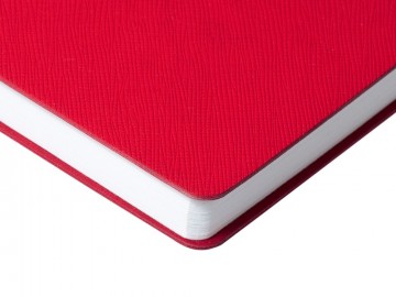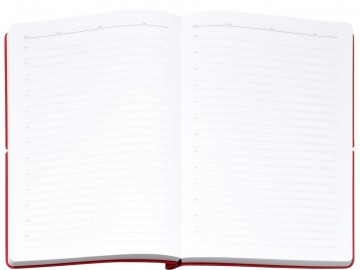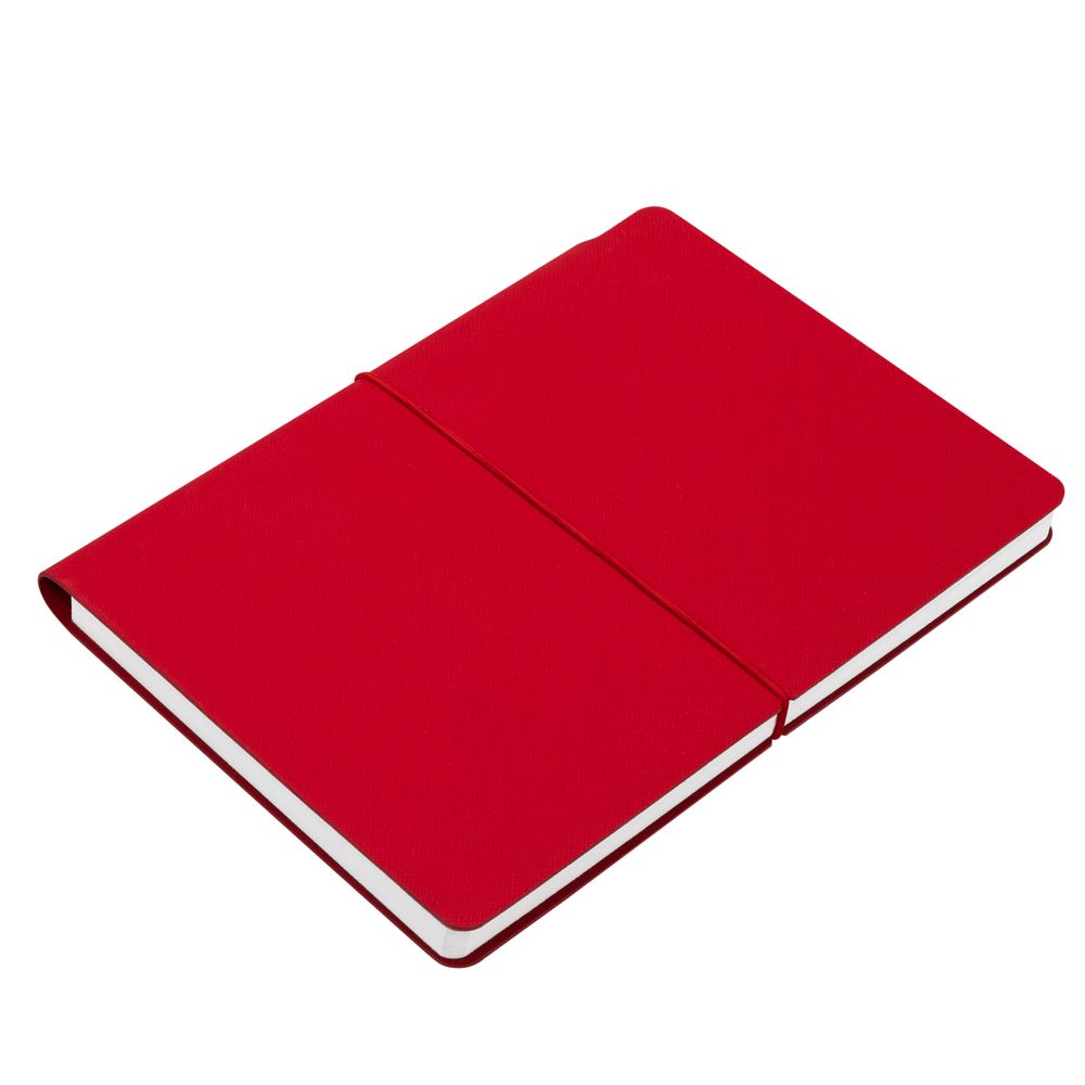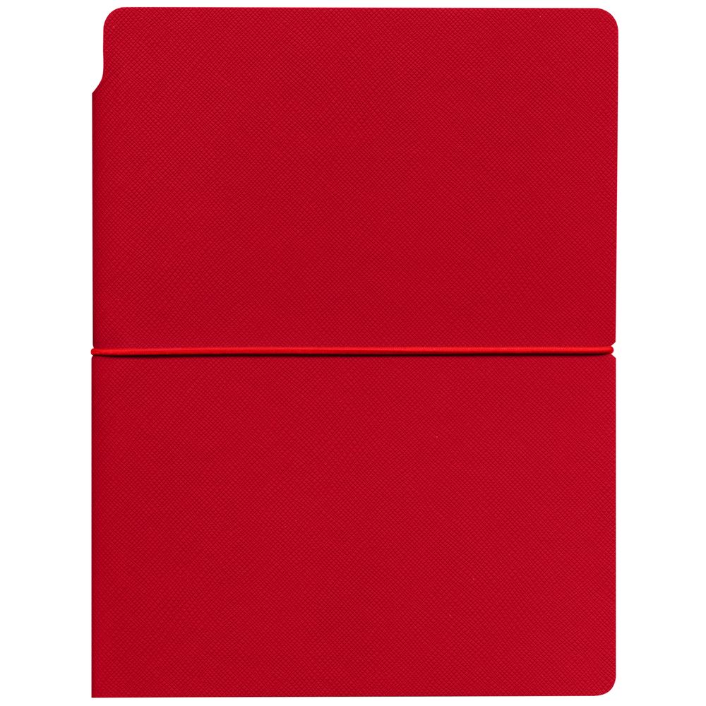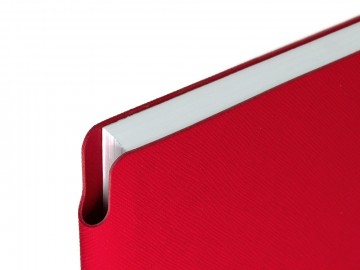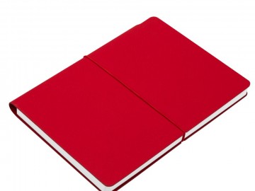 Ежедневник с гибкой обложкой выполнена из материала Nice Touch, красный и Latte, красный (внутренняя часть обложки), дополнен горизонтальной резинкой в цвет обложки. Внутри корешка — специальное место для крепления ручки размером до 15х1 см.