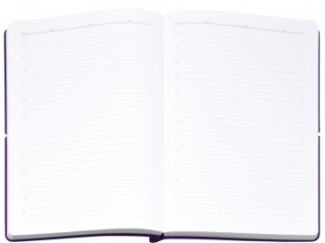 Ежедневник с гибкой обложкой выполнена из материала Nice Touch, фиолетовый и Latte, фиолетовыйl (внутренняя часть обложки), дополнен горизонтальной резинкой в цвет обложки. Внутри корешка — специальное место для крепления ручки размером до 15х1 см.