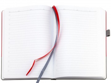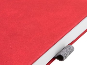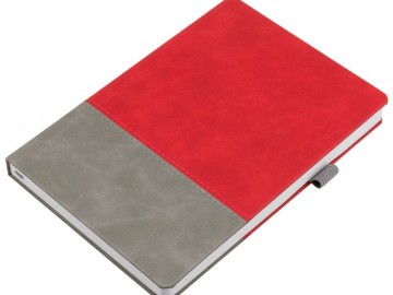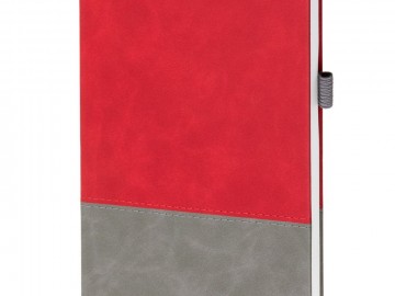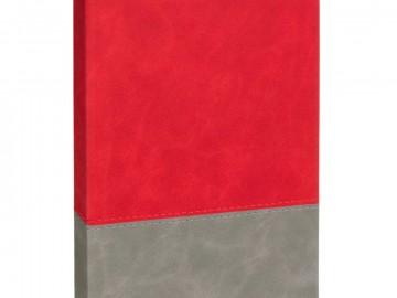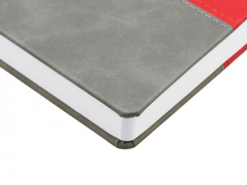Ежедневник с твердой обложкой, без поролона, со сшивкой материалов Nubuck Touch, серый СС, и Nubuck Touch красный РР, дополнен двойным ляссе и петлей-резинкой для ручки.