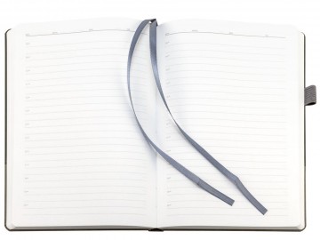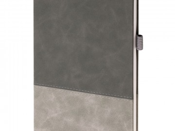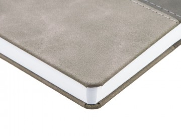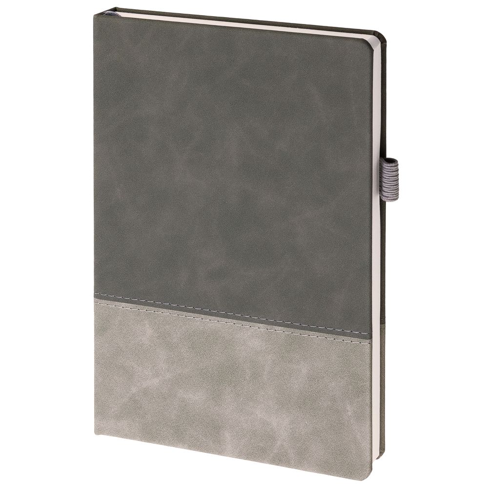 Ежедневник с твердой обложкой, без поролона, со сшивкой материалов Nubuck Touch серый СС, и Nubuck Touch тёмно-серый ЕЕ., дополнен двойным ляссе и петлей-резинкой для ручки.