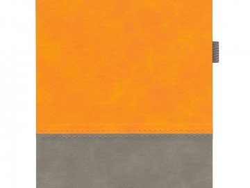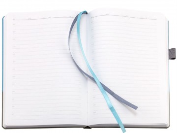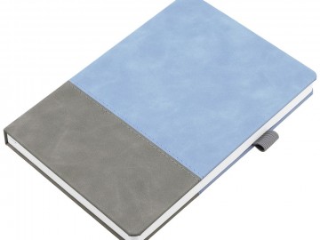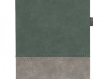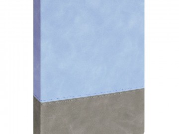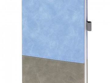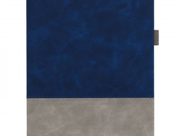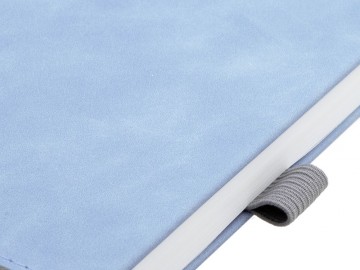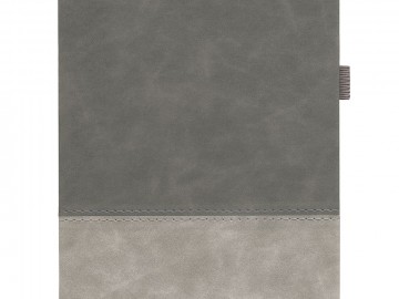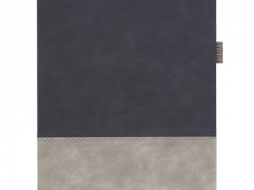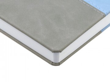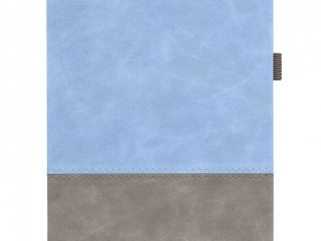Ежедневник с твердой обложкой, без поролона, со сшивкой материалов Nubuck Touch, серый СС, и Nubuck Touch голубой JJ, дополнен двойным ляссе и петлей-резинкой для ручки.