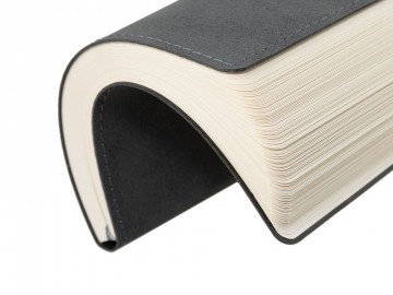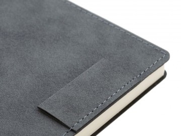 Ежедневник с гибкой обложкой, выполнен из материала Nubuck, темно-серый ЕЕ, дополнен петлей-лейблом для ручки и ляссе в цвет материала.