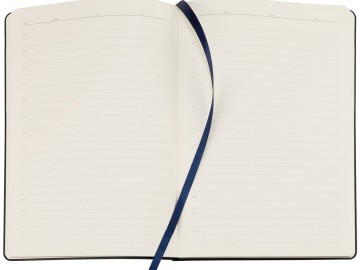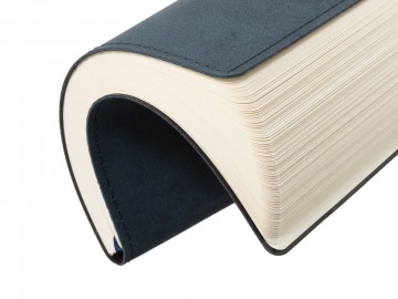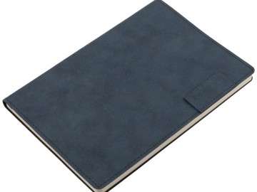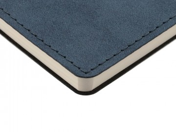 Ежедневник с гибкой обложкой, выполнен из материала Nubuck, темно-синий ХХ, дополнен петлей-лейблом для ручки и ляссе в цвет материала.