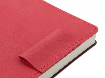 Ежедневник с гибкой обложкой, выполнен из материала Nubuck, красный РР, дополнен петлей-лейблом для ручки и ляссе в цвет материала.