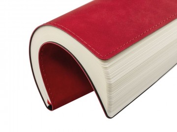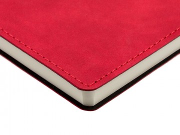 Ежедневник 17х24 см, с гибкой обложкой, выполнен из материала Nubuck Touch, красный РР, дополнен петлей-лейблом для ручки и двойным ляссе в цвет материала.