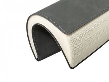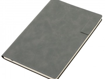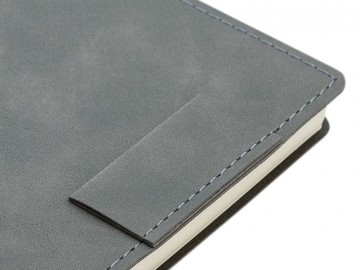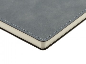 Ежедневник 17х24 см, с гибкой обложкой, выполнен из материала Nubuck Touch, темно-серый ЕЕ, дополнен петлей-лейблом для ручки и двойным ляссе в цвет материала.