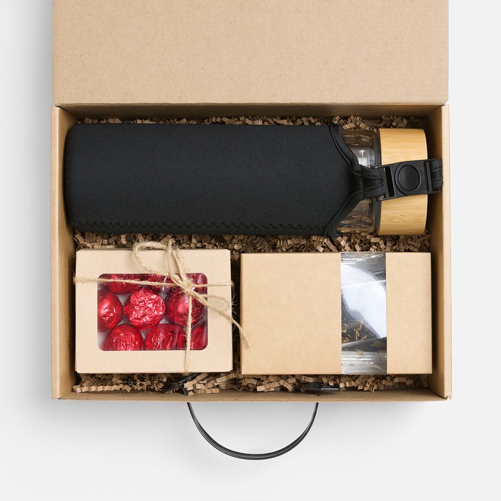 Грильяж в наборе порадует богатством вкуса, а чай подарит силы и энергию на целый день. Термобутылка из боросиликатного стекла подходит для традиционного и холодного заваривания, что особенно ценно для всех чайных гурманов: ее удобно брать с собой, наслаждаясь любимым напитком, когда захочется.