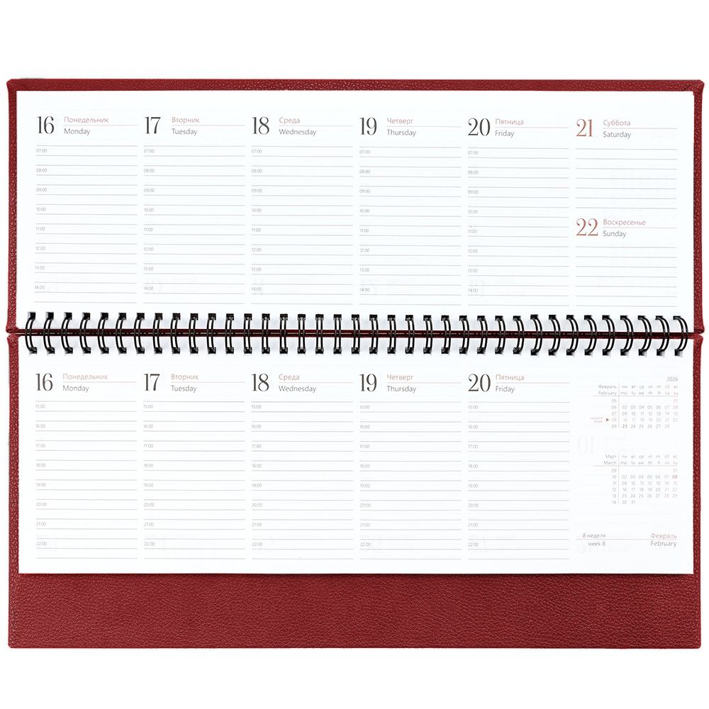 Планинг с твердой обложкой с поролоном, выполнен из материала La Fite, красный РР.