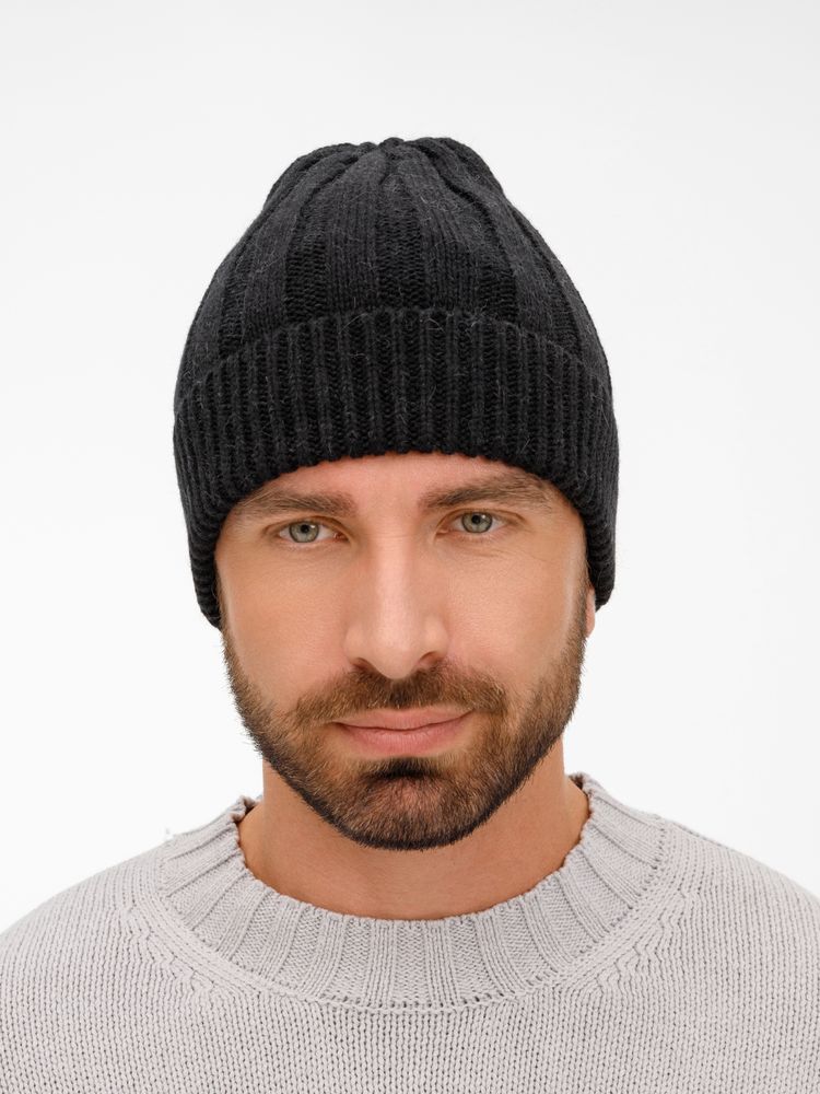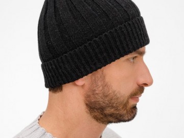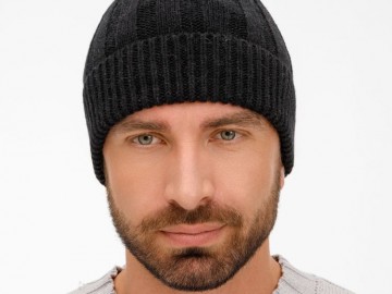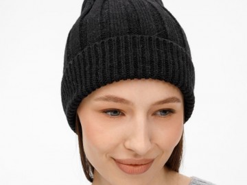 Однослойная шапка фактурной вязки с отворотом.