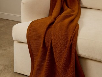 Плед из полушерстяной пряжи, поэтому прекрасно согревает и неприхотлив в уходе.