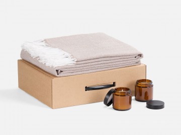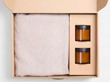 Мягкий плед с нежной бахромой станет идеальным спутником для расслабляющих вечеров и придаст стильный облик любому интерьеру. Две ароматические свечи в элегантных стеклянных баночках мягко наполнят пространство расслабляющим светом и тонким ароматом, добавляя нотки спокойствия и гармонии.