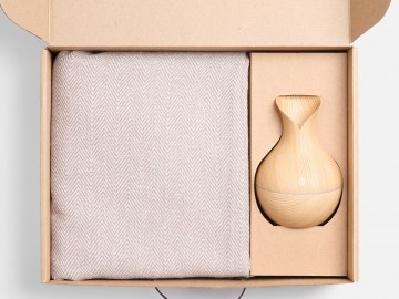 Мягкий плед нежных оттенков подарит тепло и комфорт, а изящный увлажнитель наполнит воздух свежестью и приятным ароматом. Этот набор — гармония красоты и функциональности, где каждый момент посвящен ценному отдыху и расслаблению.