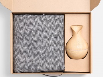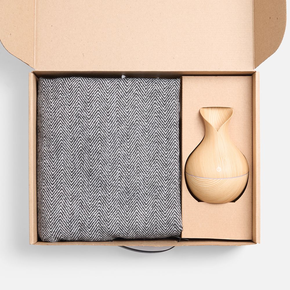 Мягкий плед нежных оттенков подарит тепло и комфорт, а изящный увлажнитель наполнит воздух свежестью и приятным ароматом. Этот набор — гармония красоты и функциональности, где каждый момент посвящен ценному отдыху и расслаблению.