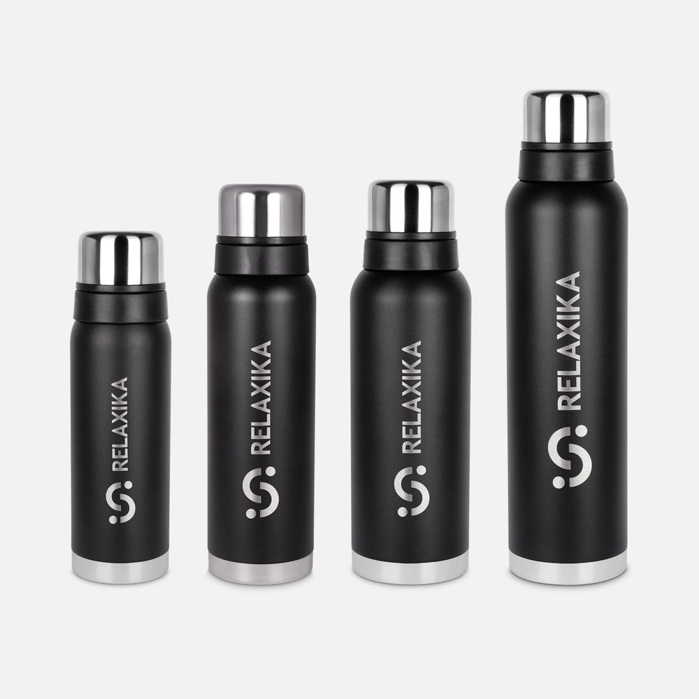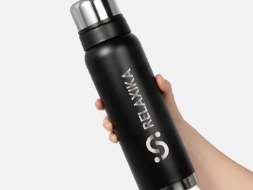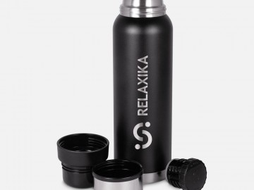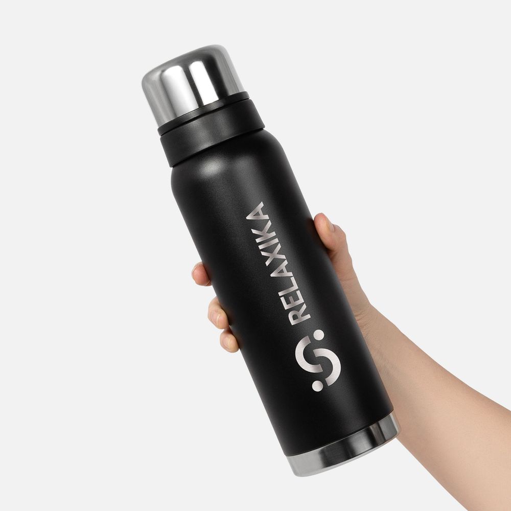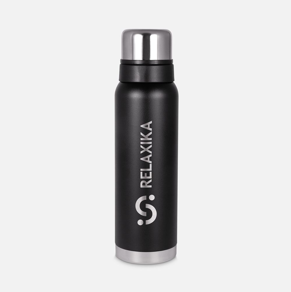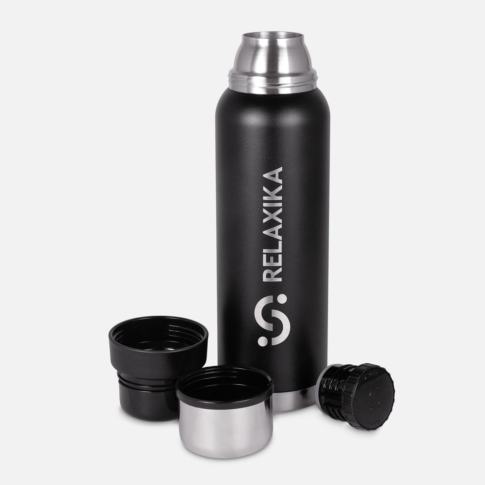 Термос Relaxika 1000 со стикерпаком, черный