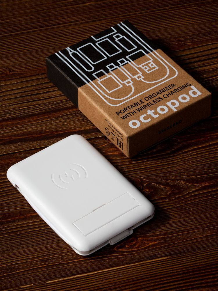 Органайзер с беспроводной зарядкой и набором адаптеров Octopod, белый