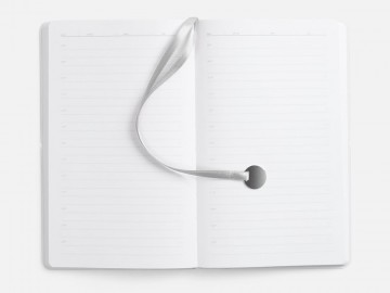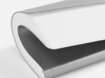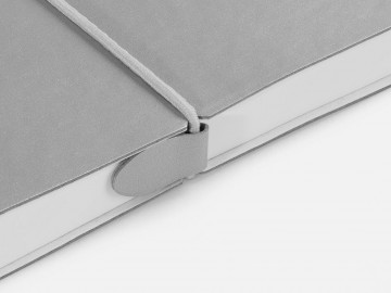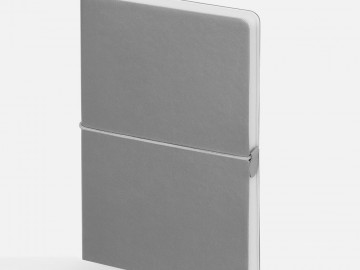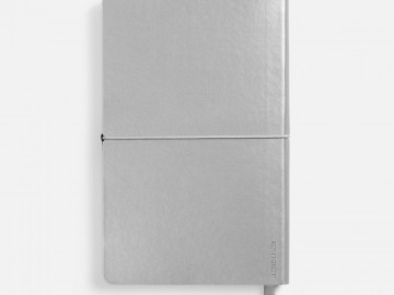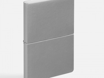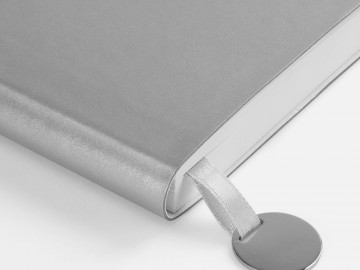 Ежедневник с гибкой обложкой, выполнен из материала Waltz, серебристый DD, дополнен ляссе в цвет обложки с металлическим шильдом.