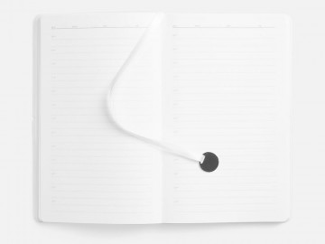 Ежедневник с гибкой обложкой, выполнен из материала Waltz, белый BB, дополнен ляссе в цвет обложки с металлическим шильдом.