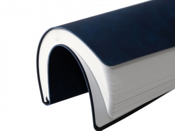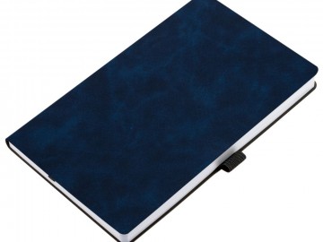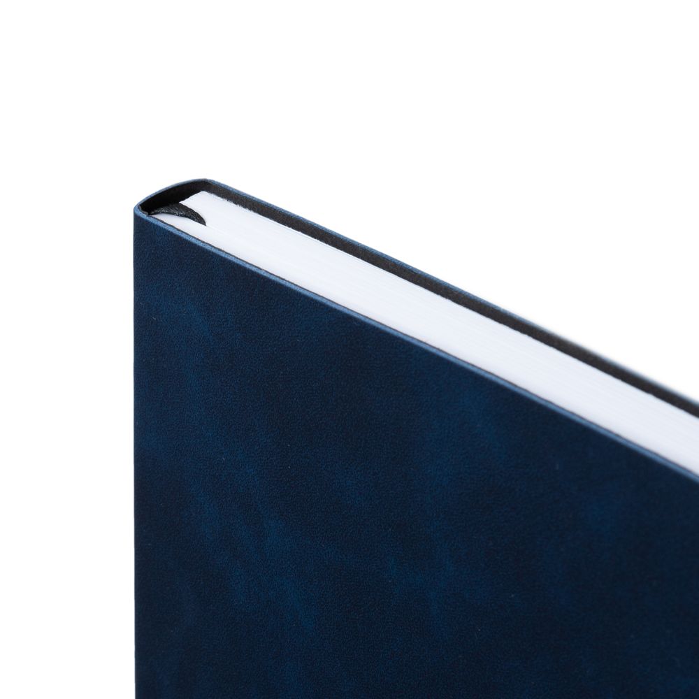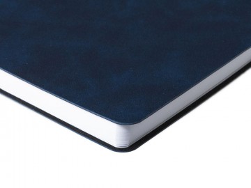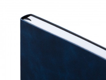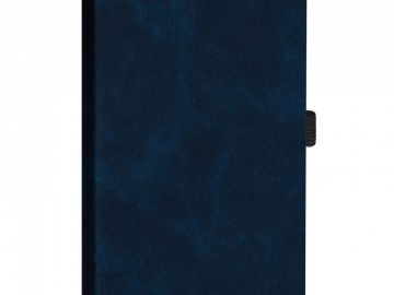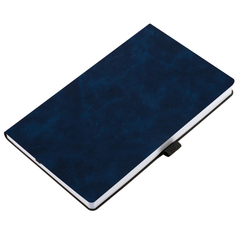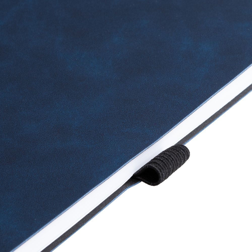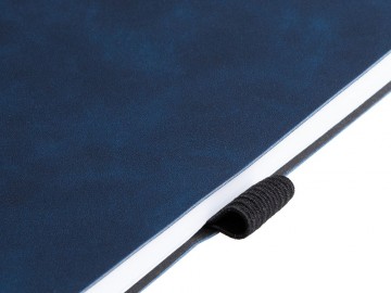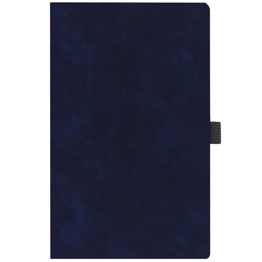 Ежедневник с гибкой обложкой, выполнен из материала Nubuck Touch, темно-синий XX, дополнен ляссе и петлей-резинкой для ручки черного цвета.