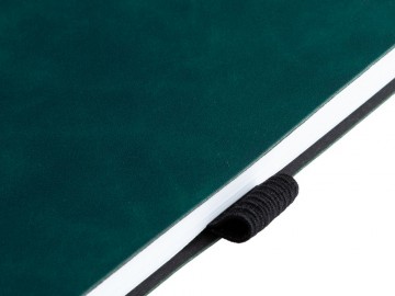 Ежедневник с гибкой обложкой, выполнен из материала Nubuck Touch, зеленый VV, дополнен ляссе и петлей-резинкой для ручки черного цвета.