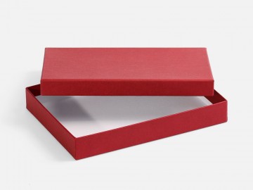 Коробка изготовлена из переплетного картона, кашированного гладкой дизайнерской бумагой Malmero.
