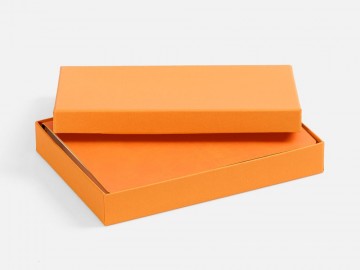 Коробка изготовлена из переплетного картона, кашированного гладкой дизайнерской бумагой Magic.