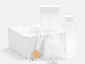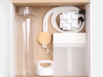 Набор собран с заботой: помимо надежного шнурка для бейджа — для быстрой идентификации на новом месте, здесь есть полезные аксессуары для гидратации как внешней, так и внутренней: компактный увлажнитель воздуха и стильная бутылка для воды. А дополняет эти функциональные предметы игра-головоломка, которая поможет и развить пространственное мышление, и переключить внимание — а в первые рабочие дни разгружать голову просто необходимо!