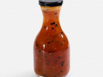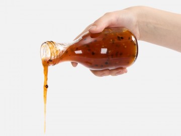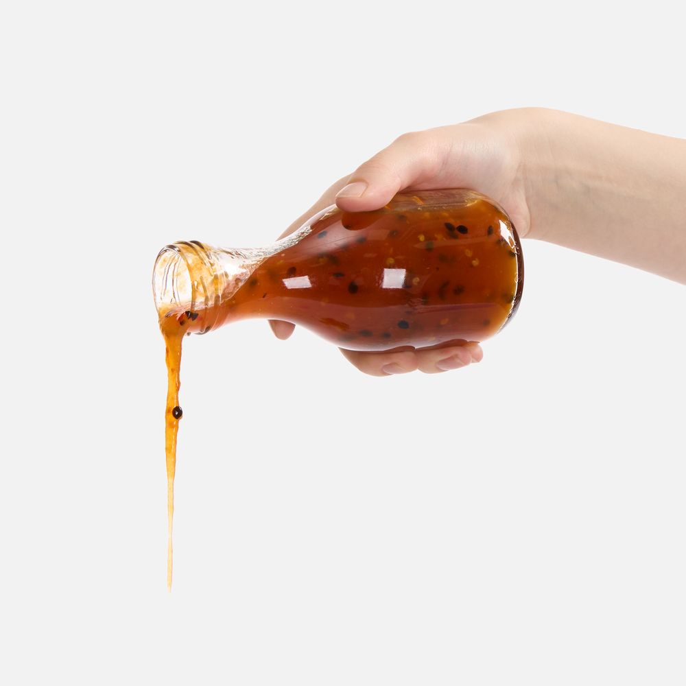 Соус лучше всего подойдет для рыбы, птицы и сыров.Состав: маракуйя, перец острый красный, сахар, вода, уксус яблочный, загуститель — пектин яблочный, регулятор кислотности — лимонная кислота, соль.