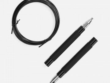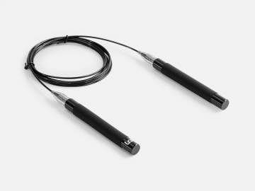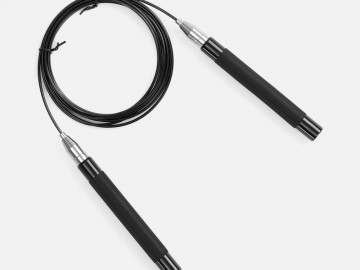 Легкие эргономичные алюминиевые ручки обеспечивают удобный захват, а полиуретановое покрытие предотвращает выскальзывание. Трос с сердцевиной из стального кабеля с гладкой оплеткой из ПВХ не запутывается при скоростном кручении, обеспечивая высокий контроль и управляемость. Система поворотных подшипников, установленная в ручках скакалки, обеспечивает равномерное вращение шнура на 360°.