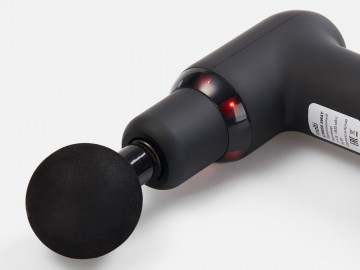 Конструкция массажера выполнена в форме мини-пистолета с тактильно приятным матовыми покрытием и эргономичной ручкой: его удобно держать и просто использовать благодаря кнопочной системе управления.