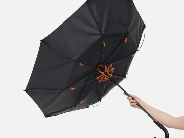 Легкий и невероятно прочный каркас из стеклопластика не боится порывов ветра. Сдержанный дизайн оживляет яркая деталь: цветные акценты на каркасе видны только при раскрытии зонта.