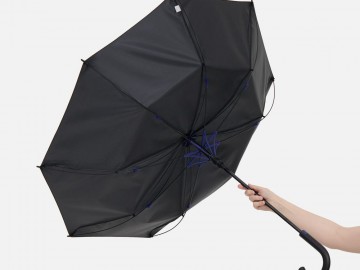 Легкий и невероятно прочный каркас из стеклопластика не боится порывов ветра. Сдержанный дизайн оживляет яркая деталь: цветные акценты на каркасе видны только при раскрытии зонта.