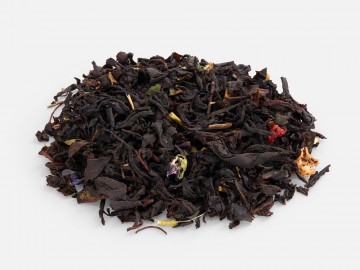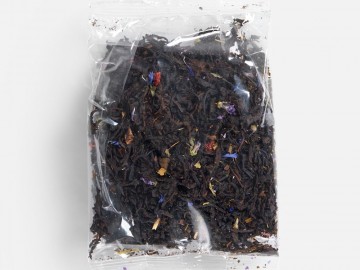 Состав: черный индийский чай, сушеная клубника, клубничный лист, цветки василька, ароматизатор «клубника».