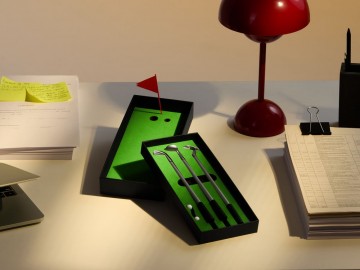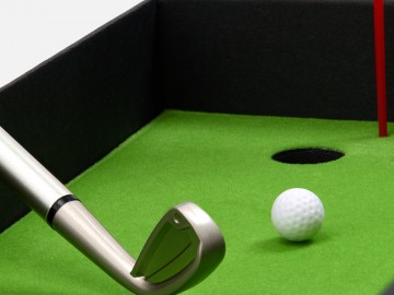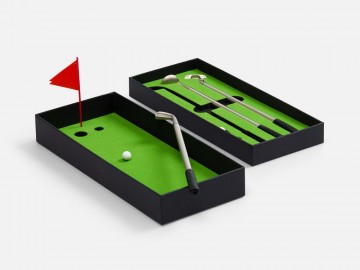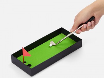 В комплект входят 3 клюшки, 2 мячика для гольфа, флажок и подарочная коробка, крышка которой служит полем для гольфа. Цель игры — забить мяч в лунку, используя специальные клюшки. Игроки по очереди делают удары, стараясь попасть в цель. Чем меньше ударов потребуется, тем больше очков зарабатывает участник.