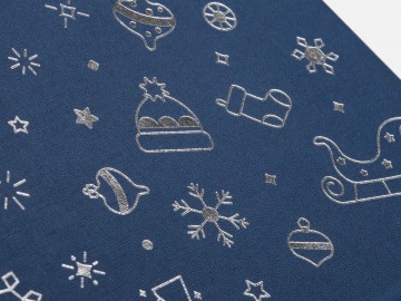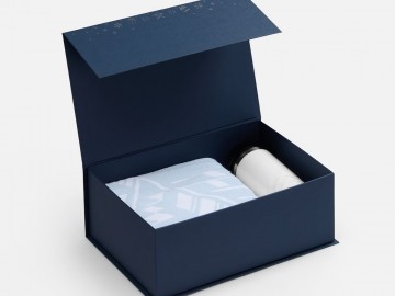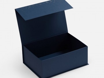Коробка выполнена из переплетного картона толщиной 1,5 мм, кашированного бумагой с тиснением серебристой фольгой.