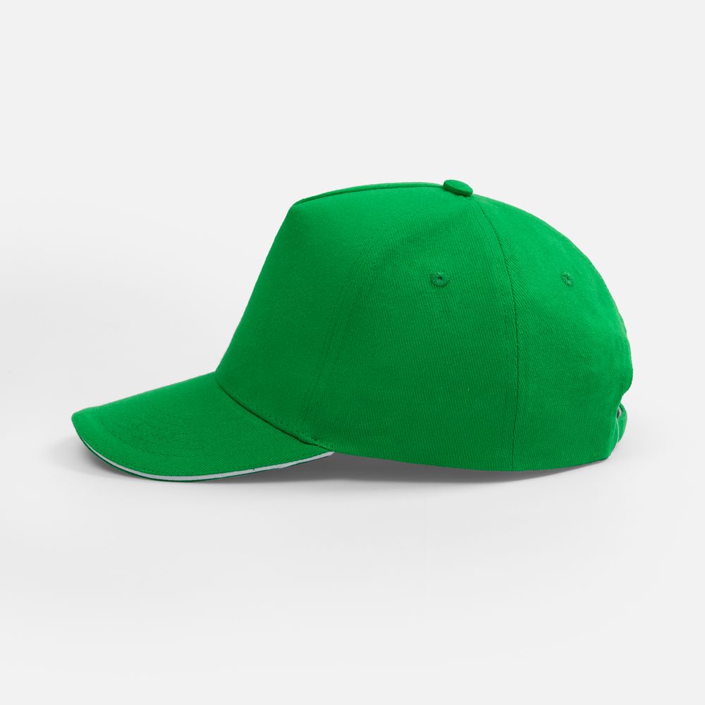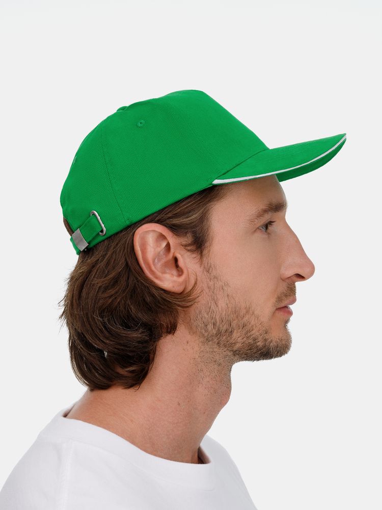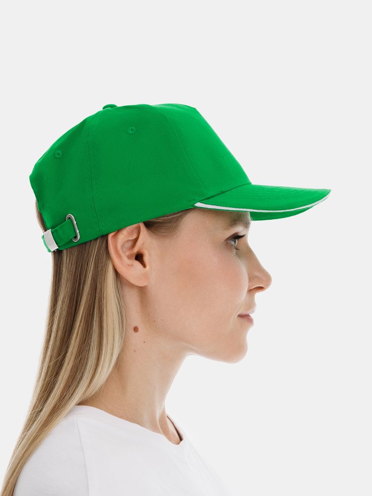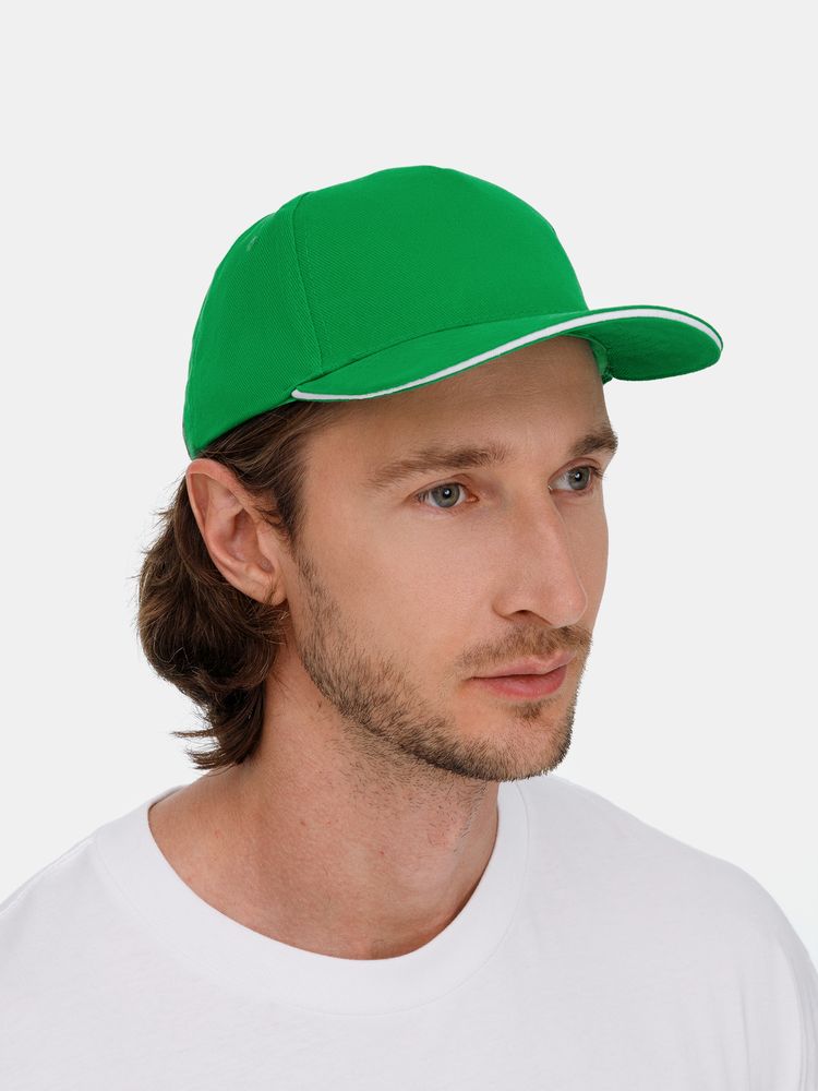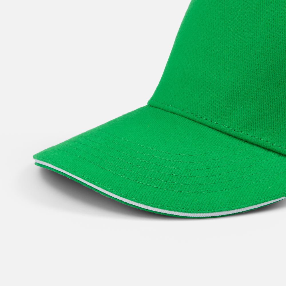 Бейсболка Classic 2.0, ярко-зеленая с белым кантом