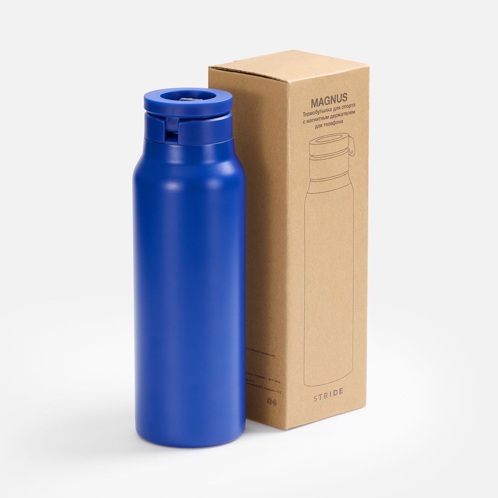 Термобутылка Magnus с магнитным держателем для телефона, синяя
