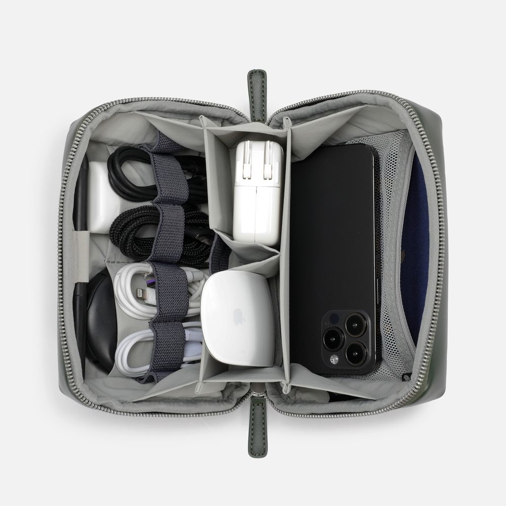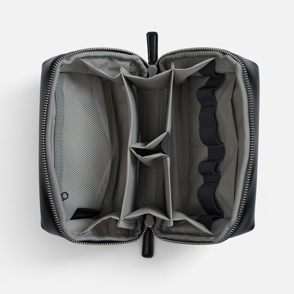 Идеален для косметики, гигиенических принадлежностей, лекарств, зарядных устройств, наушников, кабелей, внешнего аккумулятора и другой мелкой электроники. Все необходимое аккуратно размещается внутри — легко найти благодаря панели с эластичными держателями и продуманной системе отделений. Внутренний карман на молнии позволяет надежно хранить флешки, сим-карты или другие мелкие предметы. Молния с широким раскрытием обеспечивает удобный доступ к содержимому.
