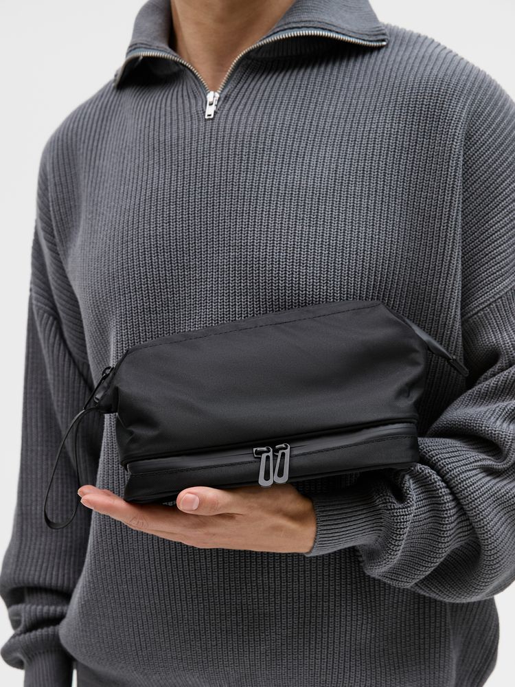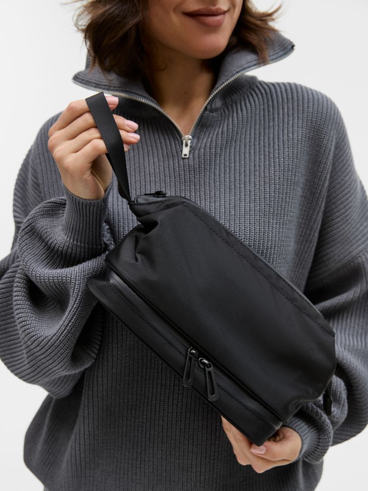 - Объем 1,5 л — достаточно для стандартного набора туалетных принадлежностей