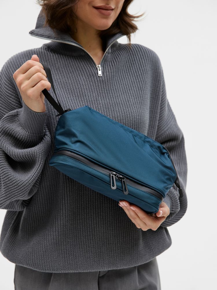 - Объем 1,5 л — достаточно для стандартного набора туалетных принадлежностей