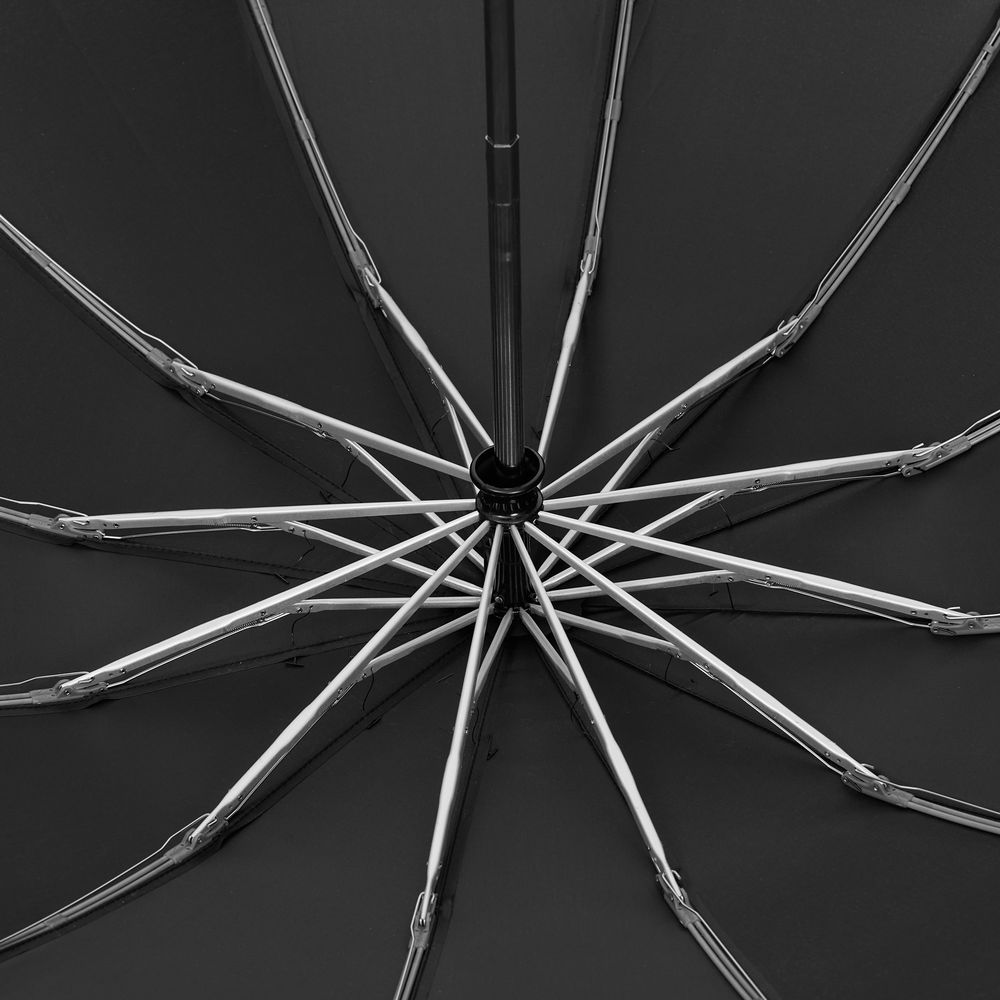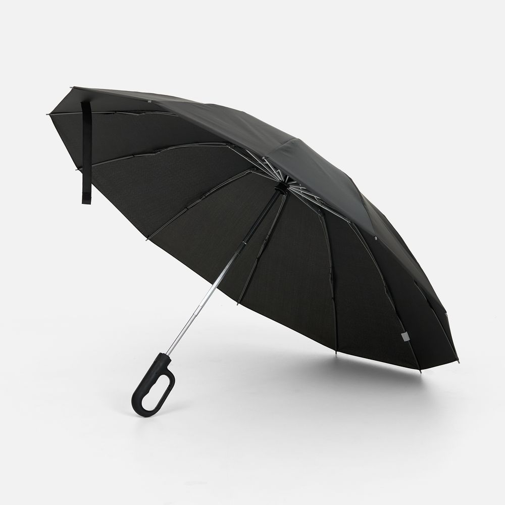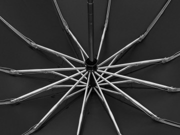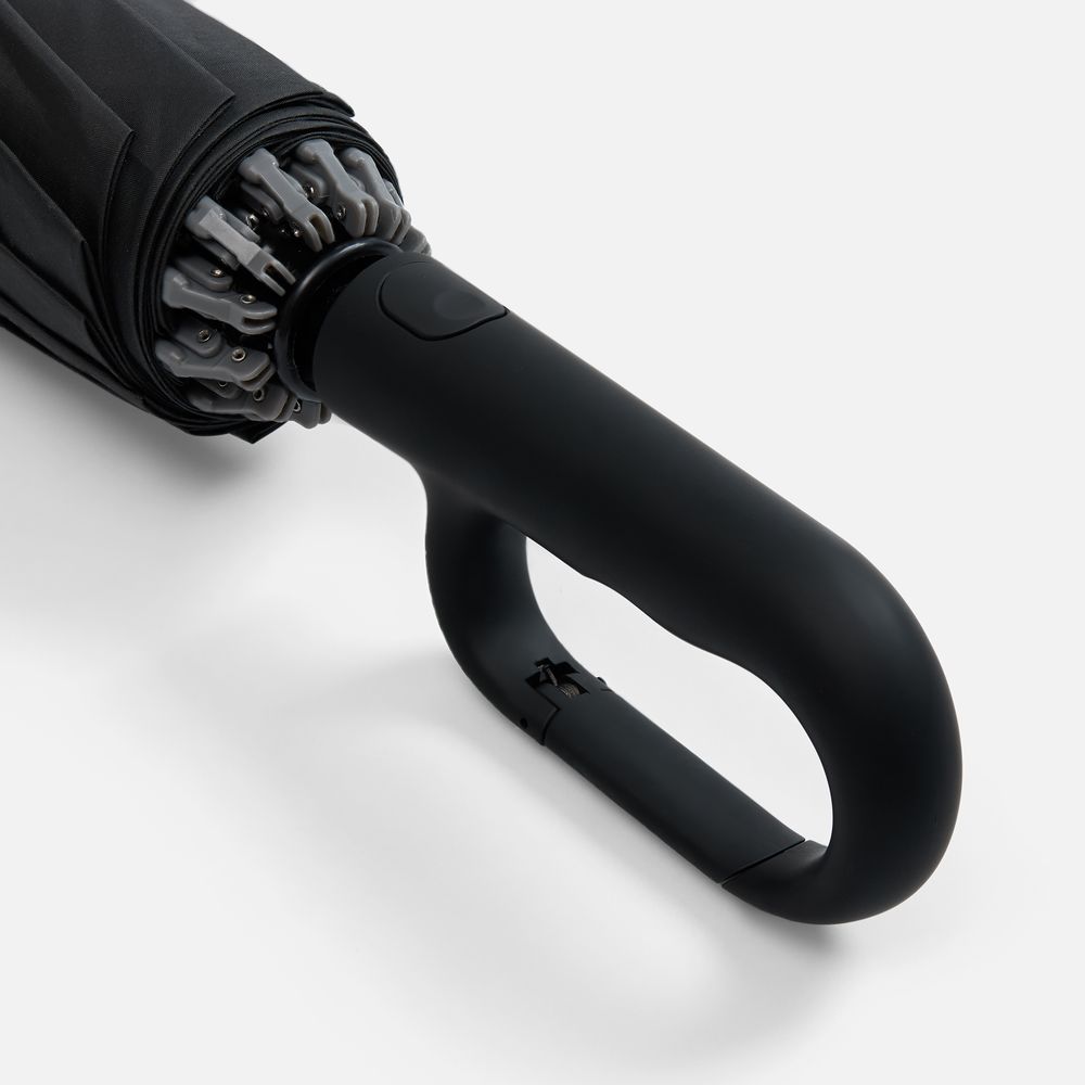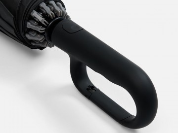 Преимущество обратного сложения заключается в том, что при закрытии внутренняя поверхность зонта остается снаружи, а мокрая сторона — внутри. За ручку-карабин удобно подвесить зонт на рюкзак или сумку.