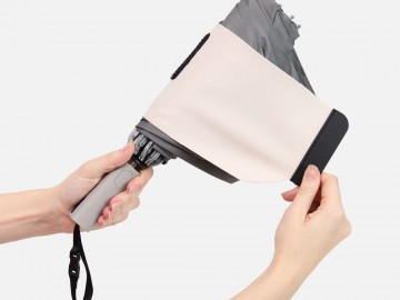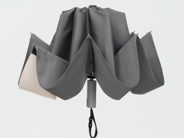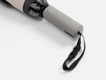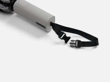 Складываясь после дождя, он прячет мокрую поверхность внутри, а сухая остается снаружи: в закрытом положении зонт не побеспокоит окружающих и не намочит одежду. Благодаря застежке на ремешке зонт удобно подвесить, например, на рюкзак.