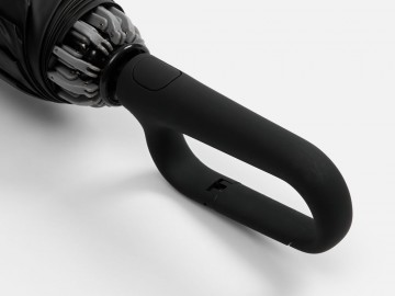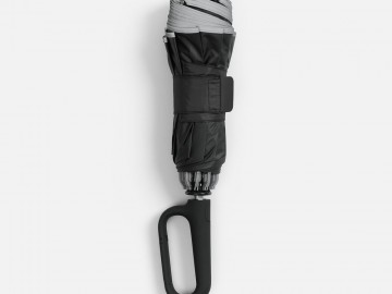 Складываясь после дождя, зонт прячет мокрую поверхность внутри, а сухая остается снаружи: так в закрытом положении он не побеспокоит окружающих и не намочит одежду. За ручку-карабин зонт удобно подвесить, например, на рюкзак.