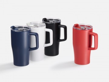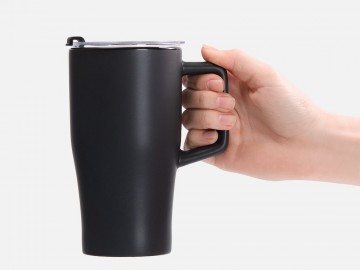 Эргономичная ручка удобно лежит в руке, а прозрачная крышка с отверстием для питья не дает содержимому разлиться на ходу или быстро остыть. Последнее особенно важно с учетом большого объема — 520 мл чая, кофе или какао хватит надолго.