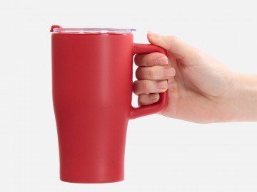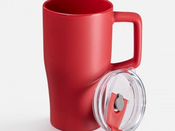 Эргономичная ручка удобно лежит в руке, а прозрачная крышка с отверстием для питья не дает содержимому разлиться на ходу или быстро остыть. Последнее особенно важно с учетом большого объема — 520 мл чая, кофе или какао хватит надолго.