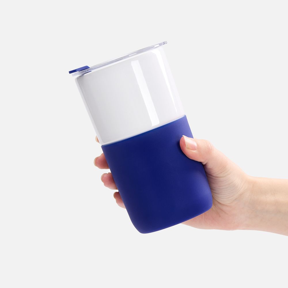 Прочная керамика — и напиток не впитает посторонних запахов и вкусов, силиконовый рукав — и стакан не обожжет руки, плотная крышка — и содержимое не прольется и не остынет слишком быстро.