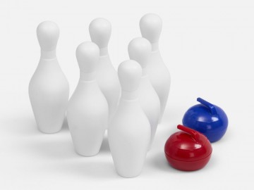 В комплекте: дорожка, 2 мяча с металлическим сердечником и 6 кеглей с утяжелителем внутри, пенал для хранения.